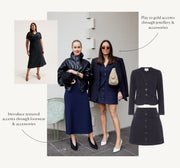 Gold jewellery and hardware bring an elegant touch, while introducing textured accents through footwear and accessories creates a fresh, modern feel.